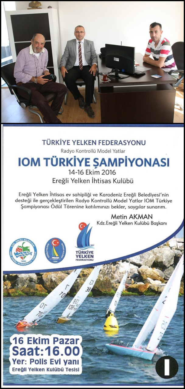 Karadeniz Ereğli'de 1 Metre Sınıfı Radyo Kontrolü Model Yatlar (IOM) Türkiye Şampiyonası'nın 14 Ekim Cuma günü başlayacağı bildirildi.
