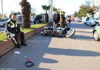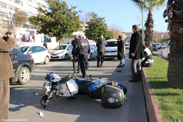MOTORSİKLETLİ POLİSE ÇARPTI