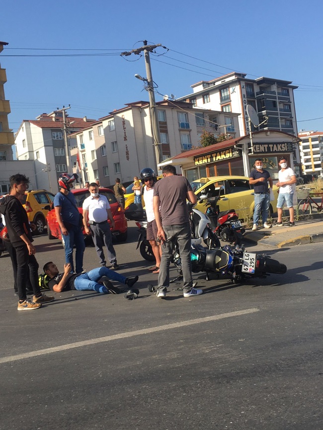 Kaza Ereğli Devrek yolu Cevizler kavşağında meydana geldi. İddiaya göre 67 LG 295 plakalı motosiklet ile ticari taksinin çarpışması sonucu meydana gelen kazada motosiklet sürücüsü yaralandı. Kazada yaralanan sürücü için yardıma koşan vatandaşlar sağlık ekiplerine haber verdi. Olay yerine gelen 112 ekipleri yaralıya yaptıkları ilk müdahalenin ardından hastaneye kaldırdı. Yaralının tedavisine başlandığı ve kaza ile ilgili soruşturma başlatıldığı öğrenildi.