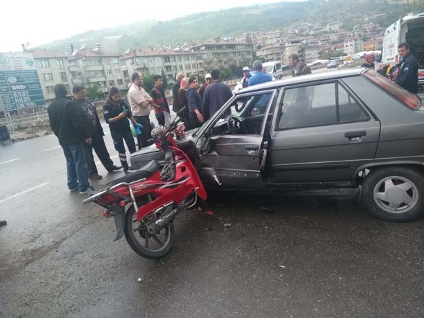 üzerinde meydana gelen kazada S.K adlı motosiklet sürücüsü özel araca yandan
