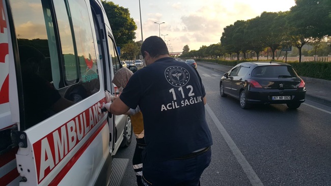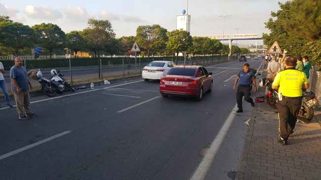 Motosiklet kırmızı ışıkta bekleyen araçların arasına daldı…