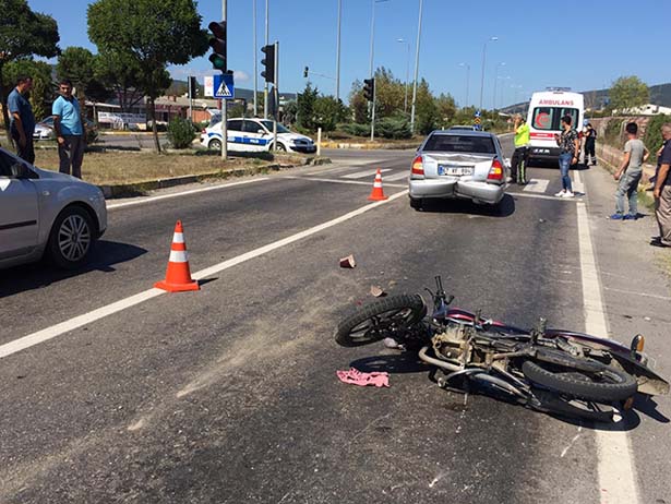 Edinilen bilgiye göre, Çaycuma sanayi kavşağı ışıklarında Çaycuma'ya seyir halinde olan Bünyamin B. hakimiyetindeki 67 VF 884 plakalı otomobile 67 SB 854 plakalı motosiklet çarptı. Motosiklet sürücüsü Murat İ. yaralandı. Olayı görenler 112 Acil Servisi ve polisi arayarak yardım istedi. Yaralanan motosiklet sürücüsü Murat İ. gelen ambulans ile Çaycuma Devlet Hastanesine kaldırıldı. Yaralının sağlık durumunun iyi olduğu belirtildi. Polis kaza ile ilgili soruşturma başlattı.