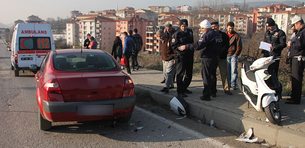 MOTOSİKLET OTOMOBİLE ÇARPTI