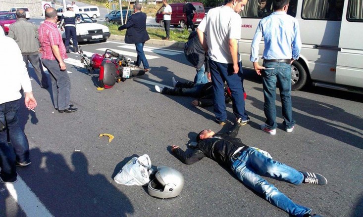 Kazada motosiklet sürücüsü İsmail T. ve motosiklette bulunan Bahadır B.