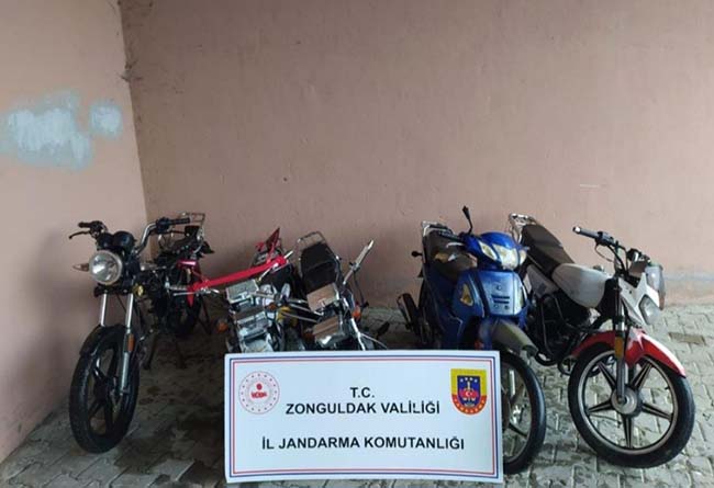 Edinilen bilgiye göre, Zonguldak İl Jandarma Komutanlığı Jandarma Dedektifleri (JASAT) ve Asayiş Timleri tarafından il genelinde son 3 ay içerisinde meydana gelen motosiklet hırsızlığı olaylarına yönelik çalışma yapıldı. 5 motosiklet hırsızlığı olayına karıştığı tespit edilen 5 şüpheli yakalandı. Adliyeye sevk edilen şüpheliler, tutuklanarak cezaevine gönderildi.