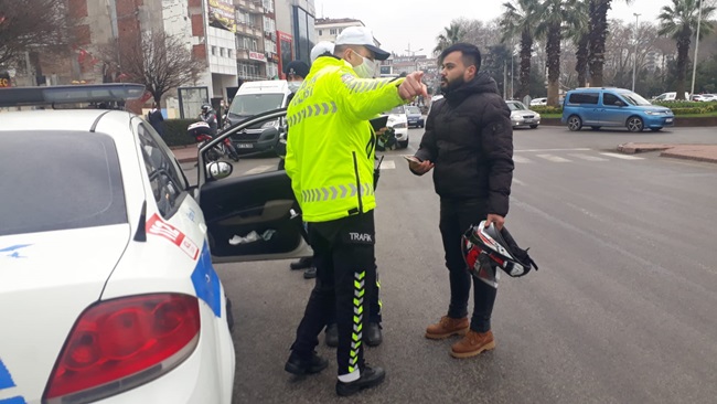 Ereğli İlçe Emniyet Müdürlüğü Trafik Denetleme Büro Amirliği Ekiplerince Anıt Kavşağı ile Bozahane Kavşağı arasında motosiklet ve sürücülerine yönelik DRON’un da kullanıldığı uygulama gerçekleştirildi. Düzenlenen uygulamada 75 motosiklet ve sürücüsü kontrol edildi. Yapılan kontrollerde 5 ehliyetsiz sürücüne, 4 ehliyetsiz sürücüye araç temin etmekten, 2 yetersiz ehliyet sürücüsüne, 2 yetersiz ehliyet sürücüne araç temin edene, 5 muayenesi olmayan motosiklete , 2 sigortası eksik motosiklete, dur ikazına uymayan ve yakalanan 2 motosiklet sürücüsüne, kask kullanmayan 13 motosiklet sürücüsüne, yaya yolundan giden 1 motosiklet sürücüsüne, mevduata uygun olmayan plakalı motosiklet sürücüsüne yaklaşık 50 bin lira ceza kesildi. Ayrıca 3 motosiklet de yapılan denetimlerde trafikten men edildi. Uygulamaların aralıksız olarak devam edeceği ifade edildi.