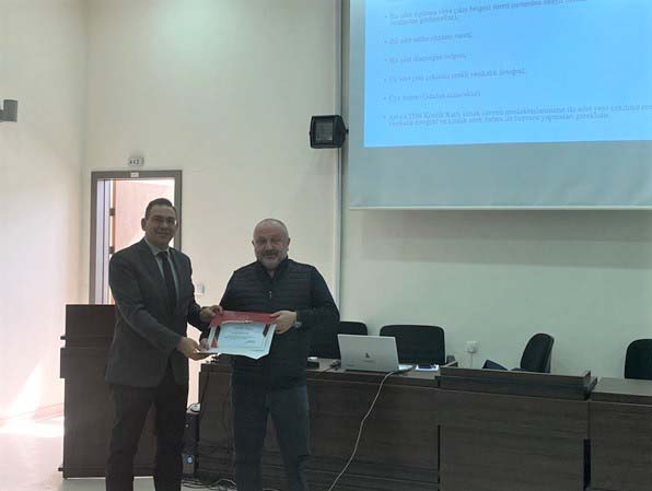 Etkinliğin sonunda Diş Hekimliği Fakültesi Dekanı Prof. Dr. Emre Bodrumlu tarafından Diş Hekimi Ergin Kuyumcu’ya teşekkür belgesi verildi.