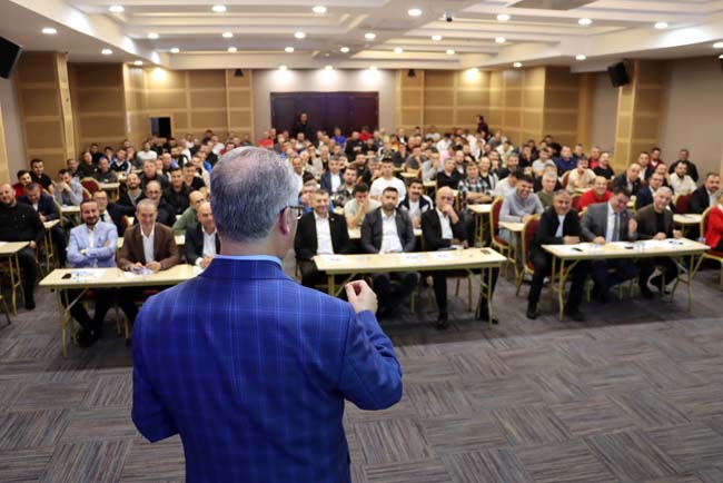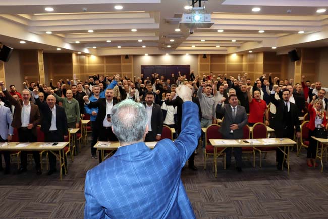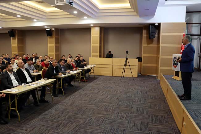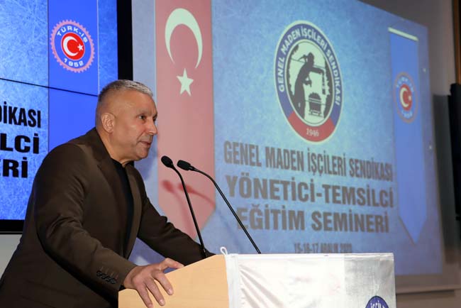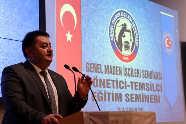 “Eğitimler bizler için olmazsa olmazlarımız. Birlik ve beraberliğimizi pekiştirmek, dayanışmamızı sağlamak ve beraber hareket etmek adına bu salonlarda beraber olmamız ve değerli hocalarımızın bizlere katkılar vererek ileriye dönük çalışmalarımızın alt yapısını oluşturmamız lazım. Mücadele bilgi ve eğitimle olur. Sendikamızın mücadelelerle dolu geçmişi var. Her an bizim hazır olmamız lazım. Bu bilgi ve birikime sahip olmamız lazım. Bu salonlarda olmamızın bu eğitimlerin amacı bu. Görüyorum ki herkes bu salonda olmaktan sendikasıyla arkadaşlarıyla olmaktan memnun. Aramızda Türkiye’nin 13 bölgesinde bizleri temsil eden MTA temsilcisi arkadaşlarımız var. Biz büyük bir ailemiz. Onlar bizim Türkiye’ye açılış kapımız. Hepsine sizler adına hoş geldiniz diyorum. Bizler için çok değerliler. Bizler büyük bir aileyiz. Bu büyük ailenin oluşması dayanışmadan geçer. Çok değerli hocalarımız engin bilgileriyle bizleri aydınlatacak. Bizler emekçiyiz. İş güvenliğimiz can güvenliğimiz çok önemli. Ocaklardan çıkan en değerli cevher insandır. Bunu unutmadan çalışmalıyız. İş yerlerimizde böyle çalışmak zorundayız. Sizler iş yerlerinde sendikamızı temsil eden yöneticilersiniz. Görevleriniz var. Bu görevleri hep beraber yapmak zorundayız. Ben eğitim seminerimizin camiamıza hayırlı olmasını diliyorum. Hepinize katılımlarınızdan dolayı teşekkür ediyorum.”