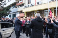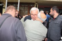 Halil Posbıyık vatandaşlarla vedalaşarak, helallik isteyerek, Belediyeden