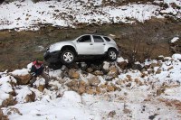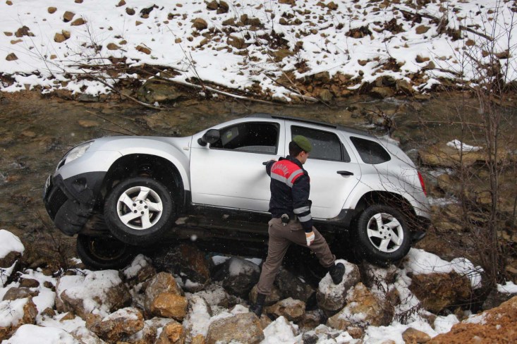 yüksekliğindeki derede yan duran araçtan kendi imkanlarıyla çıkan Yeni, durumu
