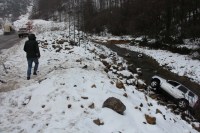 Üç sefer tekerlek sağa sola döndü. Sonunda buraya doğru zor kurtardım. Arabadan