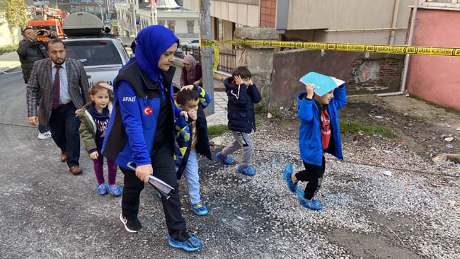 Gerçeği aratmayacak şekilde yapılan tatbikatta afad ve jandarma ekipleri müftülük çalışanlarını ve kuran kurslarında eğitim gören çocukları çök kapan tutun yöntemiyle güvenli şekilde binadan tahliye etti.