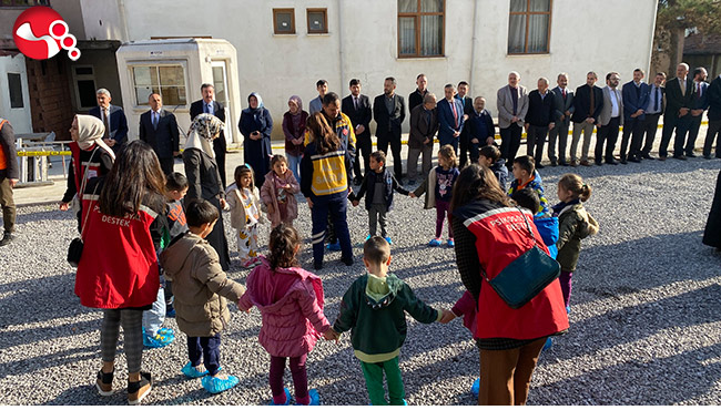 AFAD İl Müdürü Ahmet Güngör; “İçişleri Bakanımız Süleyman Soylu ve Diyanet İşleri Başkanımız Prof. Dr. Ali Erbaş’ın da katılımıyla bugün ülke genelinde müftülük binaları ve kuran kurslarında deprem anı ve tahliye tatbikatı var. Deprem anında çocuklarımız çök, kapan ve tutun yapacaklar. Ardından tahliyelerini gerçekleştireceğiz. Tahliyeler gerçekleştikten sonra sağlık ekiplerimiz ve psikodestek ekiplerimiz onlara destek verecek. Ardından jandarma binada kalan varmı diye binayı kontrol edecek. Daha sonra çevre müdürlüğümüz binanın güvenli olup olmadığını, herhangi bir hasar var mı onu kontrol edecek. İtfaiyemizi de hazır bekletiyoruz, yaşanabilecek bir yangın anında müdahale edilecek” dedi.