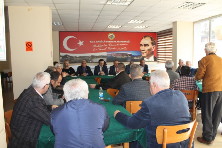 Daha Sonra Kdz.Ereğli Mahhalle ve Köy Muhtarları Derneğini de ziyaret eden Müftüoğlu ve DSP heyeti orada da muhtarların sorunları hakkında fikir alışverişinde bulunup kendisine ve partisine destek istedi.
