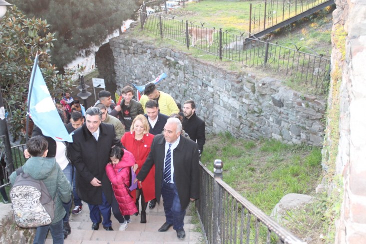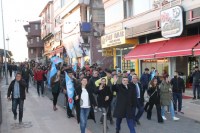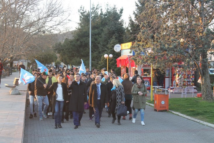 vatandaşları selamlayan DSP heyeti yürüyüşünü Atatürk Anıtına kadar devam