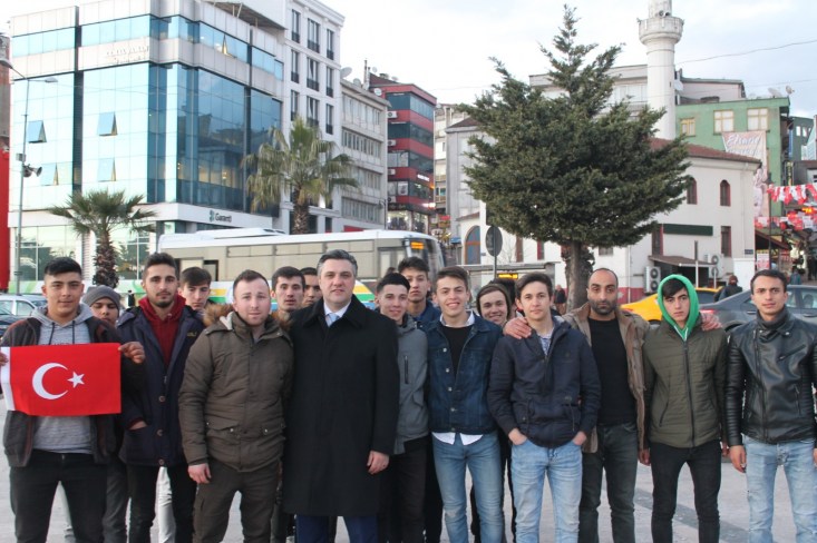 ve Partili gençlerle ''en büyük başkan bizim başkan'' sloganları ile Sahil