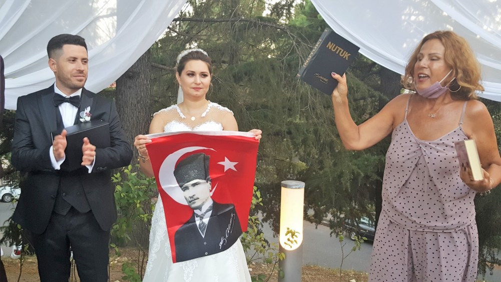Bayan Posbıyık, Cerrah ve Dinçel ailelerinin mutlu gününde; genç çiftlere Türk Bayrağı üzerine işlenmiş Atatürk resimli bayrak, Kuran'ı Kerim ve Atatürk'ün Nutuk kitabını hediye etmesi nikah törenine damgasını vurdu.