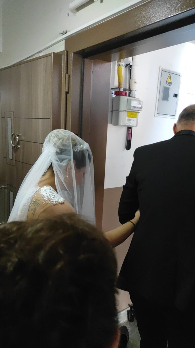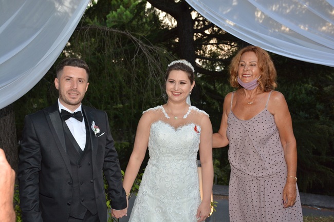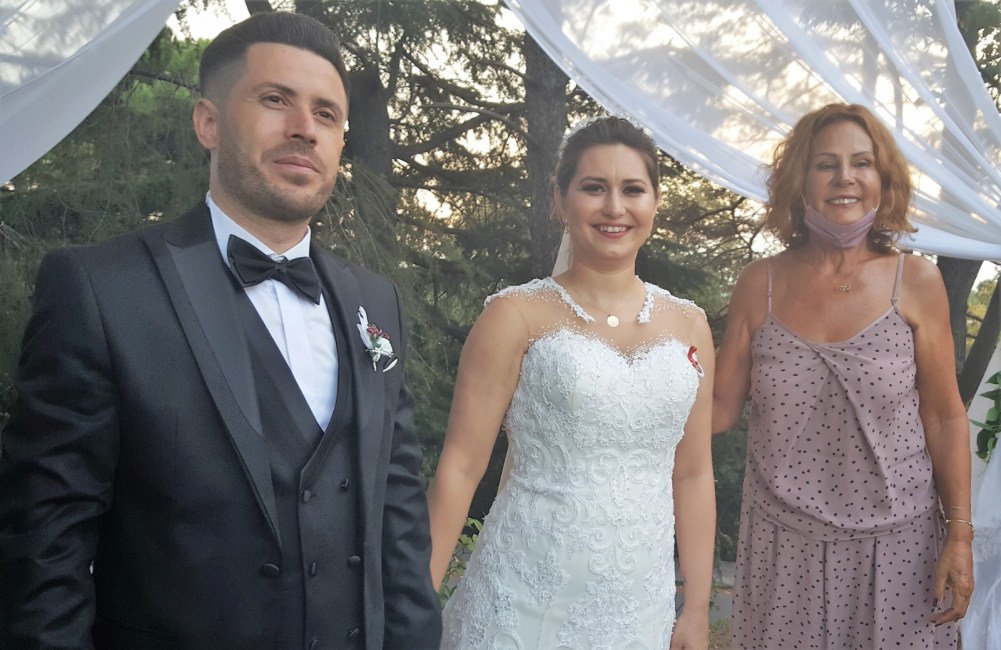 Müge Cerrah ve Erdinç Dinçel çiftine nikah merasimlerinde Neriman Posbıyık'tan sürpriz hediye.
