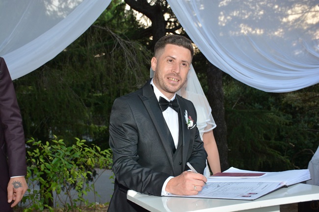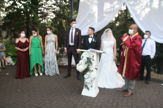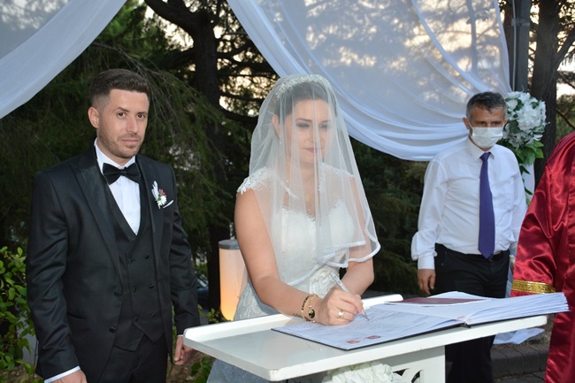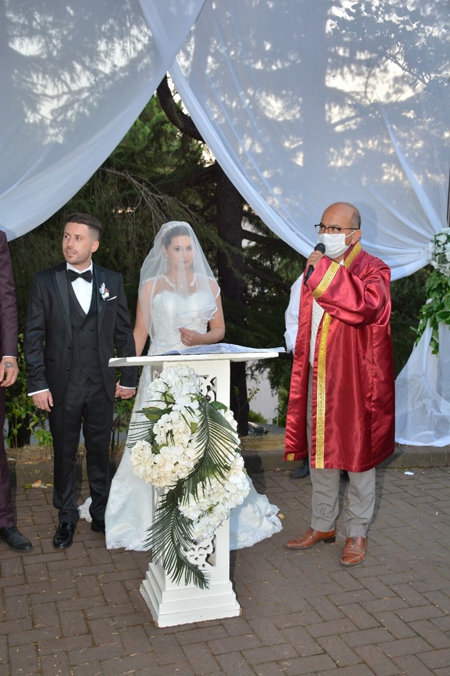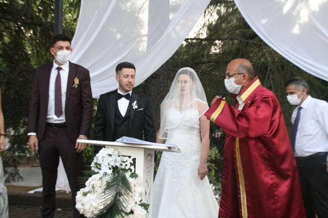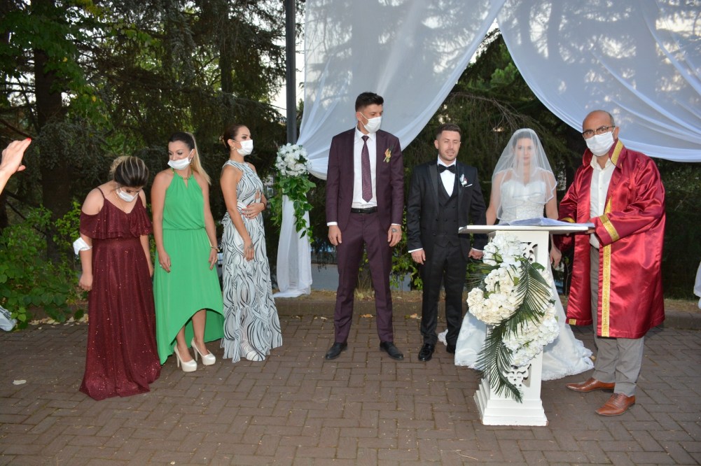 08 Ağustos 2020 Cumartesi günü saat 19.00’da Eski Bağlık Düğün Salonu’nda nikâh merasimiyle başlayan tören ile Müge Cerrah ve Erdinç Dinçel, nikah defterlerine attıkları imza ile ömür boyu sürecek mutluluğa ‘EVET’ dediler.