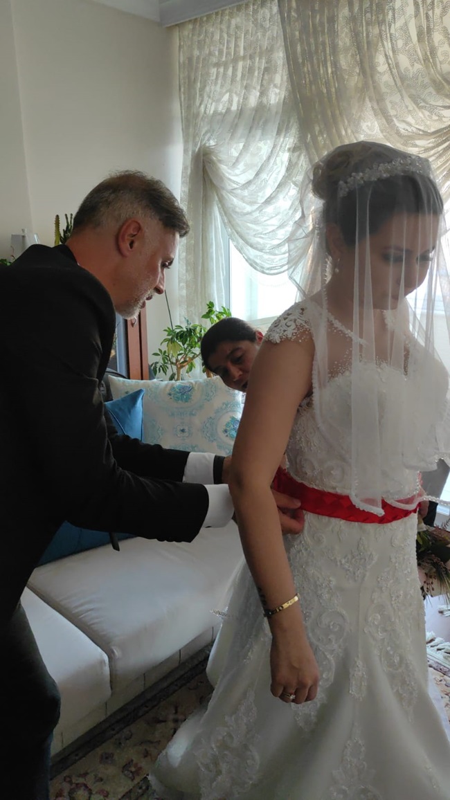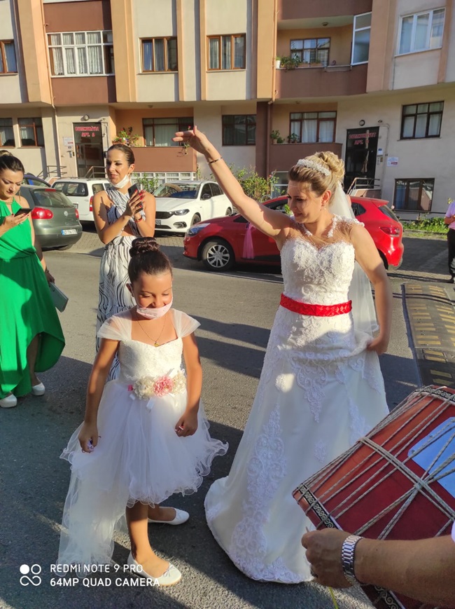 Bağlık Mahallesi Hatip Sokak Ersöz Sitesi önünde Cerrah Ailesinin kızları Müge Cerrah’ı ev önüne davul zurna ve motosiklet eşliğinde gelen Dinçel Ailesi Müge Cerrah’ı yurtdışından gelen rahmetli Birol Karadeniz’in oğlu Özgür Karadeniz evden çıkartarak damat Erdinç Dinçel’e teslim etti.