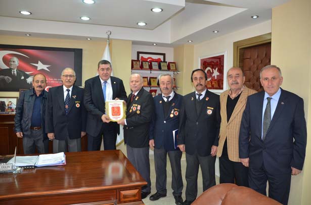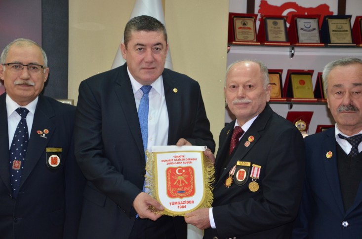 Türkiye Muharip Gaziler Derneği Zonguldak Şube Başkanı Ramazan Çakal, Dernek Yönetim Kurulu Üyeleri ve Alaplı Şube Başkanı Muammer Özdemir ile birlikte Alaplı Belediye Başkanı Nuri Tekin'i ziyaret ettiler.