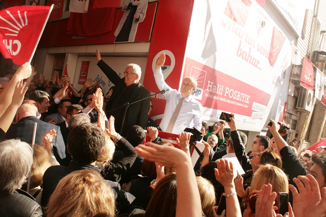 İnce, daha sonra Belediye başkan Adayı Halil Posbıyık ve parti yöneticileri ile alkışlar arasında seçim bürosundan ayrıldı.