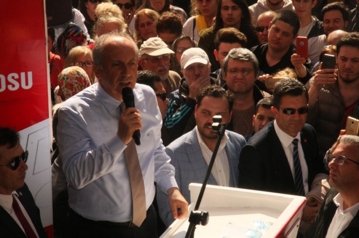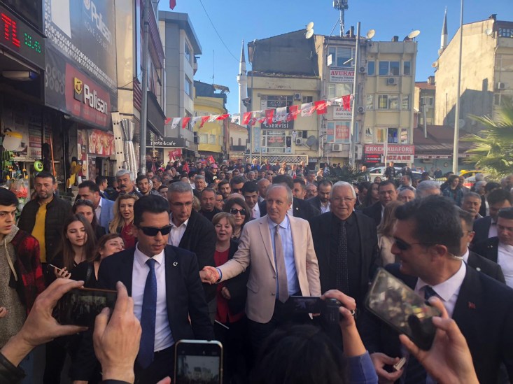 CHP Belediye Başkan Adayı Halil Posbıyık, İskele Camisi yanında bulunan seçim bürosu önünde kurulan kürsüden yaptığı konuşmada, Muharrem İnce Sevgisinin meydanlar sığmayacağını bildiğini belirterek, "Sayın Muharrem İnce'ye gösterdiğiniz bu sevgiden dolayı teşekkür ediyorum" dedi. Posbıyık ilçe başkanı Sevdekar Aras ve Kendisinin konuşmayacağını belirterek mikrofonu Muharrem İnce'ye verdi.