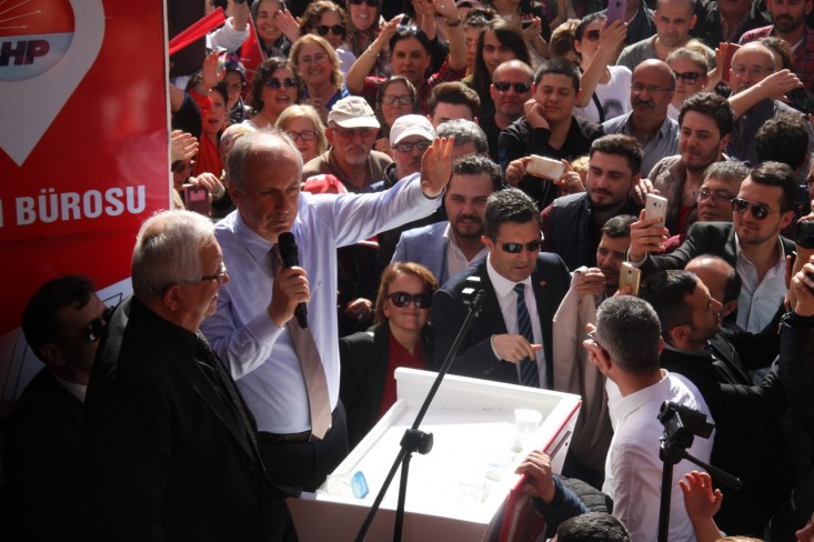 İnce, seçim ofisinin bulunduğu noktaya açılan sokakları dolduran vatandaşlara "Bunu yapacak mıyız" diye sorunca vatandaşlar "Evet" diye bağırdı. İnce bunun üzerine, "Halil Abi hayırlı uğurlu olsun, Nisan'dan sonra çayını içmeye gelirim" dedi.