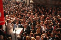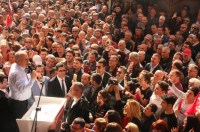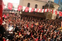 "Sandığa giderken şunu düşünmelisiniz. 24 Haziran seçimlerinde kampanyalarda şunu söyledim. Barışacağız, büyüyeceğiz, bölüşeceğiz dedim. Barışacağız, Çanakkale'de olduğu gibi. Çanakkale'de, Türk Kürt, alevi Sünni var mıydı, yoktu. Demek ki barışmıştık. Peki büyüyeceğiz, Çanakkale'deki imanda olduğu gibi büyüyeceğiz. Bölüşeceğiz, adil bölüşeceğiz, nasıl olacak bu? Çanakkale'de olduğu gibi. Bazen bulgur pilavını, bazen buğday aşını, bazen üzüm sarmasını beraber bölüşeceğiz.