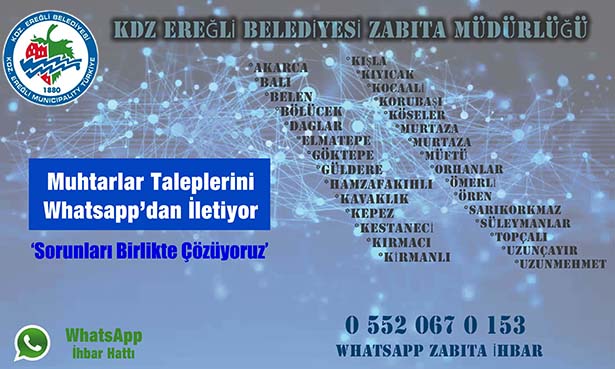 Karadeniz Ereğli Belediyesi Zabıta Müdürlüğü bünyesinde Muhtar ihbar hattı kuruldu.