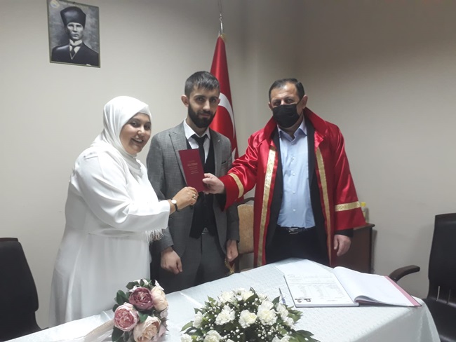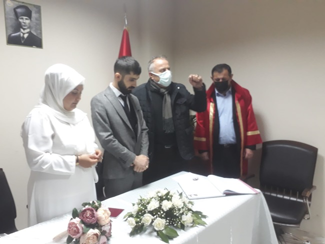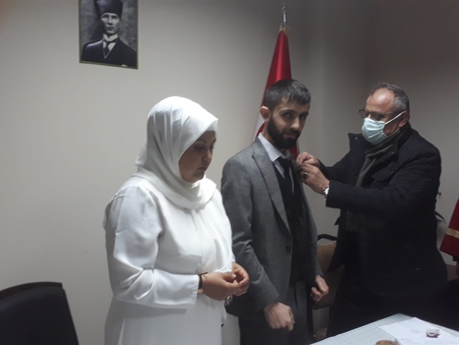 Ereğli ilçesine bağlı Yalnızçam Köyü Muhtarı Ersin Kuşçu pandemi salgını dolayısıyla oğlunun nikahını kendisi kıydı. Oğlu Ferdi ile gelini Şükran'ın nikahını Muhtarlar Derneği'nde kıyan baba Kuşçu" Pandemi salgını dolayısıyla nikahımızı burada kıymak zorunda kaldık. Oğlum ve gelinimin nikahını kıymak çok farklı bir duygu. Rabbim gençliğimizin ömrünü uzun eylesin, mutluluklarını daim eylesin" dedi.