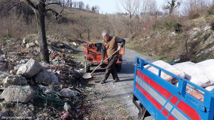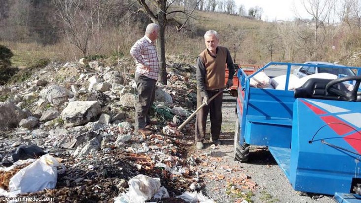 Buradan geçerken tarım aracıyla bir vatandaşı buraya çöp döküyor zannettim.