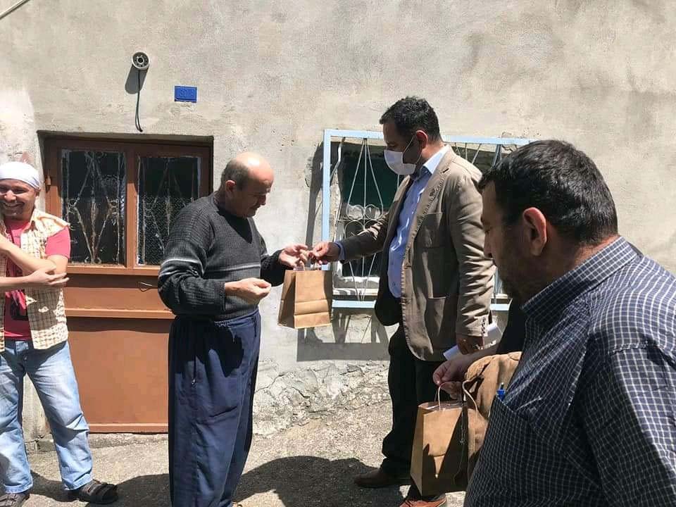 Kdz. Ereğli ilçesine bağlı Artıklar Köyü Muhtarı Nevzat Berber, Ramazan Bayramının ilk gününde köy sakinlerine bayram şekeri, lokum ve maske dağıttı.