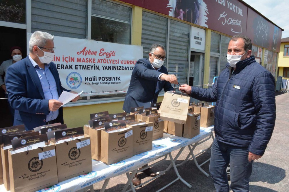 Belediye Başkanı Halil Posbıyık’ın talimatıyla Kdz. Ereğli Belediyesi, Ormanlı, Gülüç ve Kandilli Beldelerine 10 bin 500 maske desteğinde bulundu, maskeler 3 beldedeki 13 muhtarlığa teslim edildi.