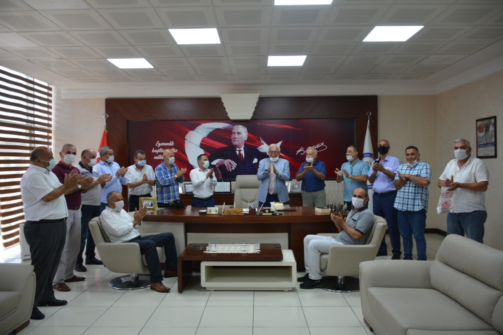 Kdz. Ereğli Muhtarlar Derneği Başkanı Şükrü Kılıç ve mahalle muhtarları her zaman ziyaret ettikleri Belediye Başkanı Halil Posbıyık’ı bu kez ellerinde pasta ile ziyaret ettiler.