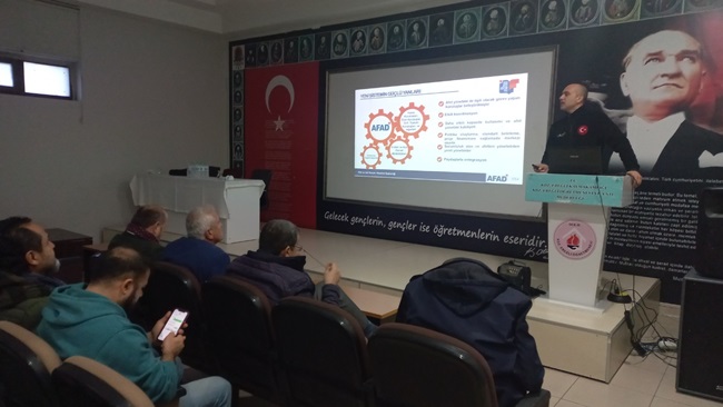 Edinilen bilgiye göre, İçişleri Bakanlığının başlattığı, “Muhtarlarımız Destek Afet Gönüllüsü Oluyor” projesi kapsamında, Zonguldak AFAD tarafından, İlçedeki Öğretmeni salonunda muhtarlara seminer verildi.