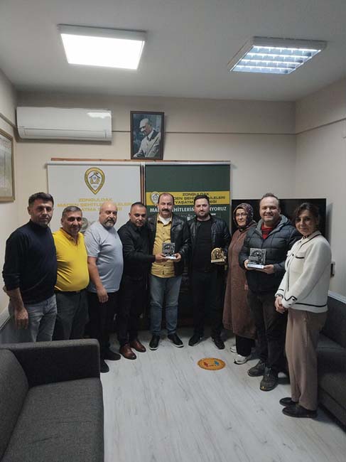 Karadeniz Ereğli’de görev yapan muhtarlar Ercan Berberkayar, Özcan Dağ ve Ümit Efe, Madenciler günü dolayısıyla Maden Şehitleri Aileleri Yaşatma Derneği’ne ziyarette bulundu.