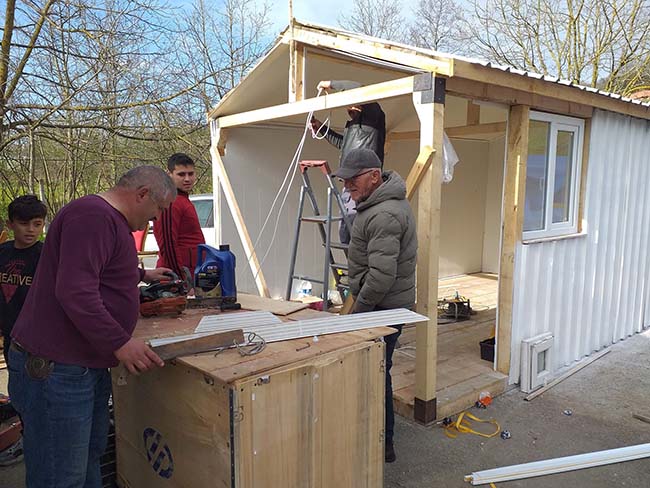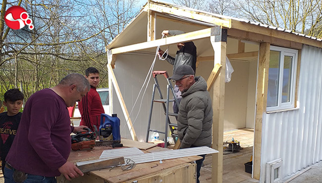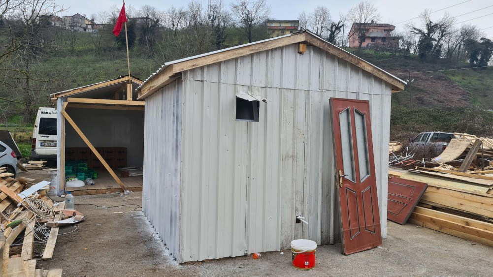 "Kahramanmaraş Elbistan'da bulunan bir arkadaşımız, daha önce burada misafirimiz oldu. Memleketinden daha önce başka yere göç edecekti ve kendisine ait hayvanları satacaktı. Bizde kendisine satma dedik, kendisine böyle yaşama ahşaptan konteyner yaptık. Malzemesini burada hayırsever vatandaşlardan , dostlarımızdan temin ettik. Burada 8 kişi olmak üzere bir hafta çalıştık. Konteynerde oturma odası, yatak odası, salon, mutfak, banyo, tuvalet ve ardiye olacak. Birazdan tıra yükleyip Kahramanmaraş Elbistan'da teslim edeceğiz. Orada bulunan vatandaşımız yine hayvanlarıyla besiciliğe devam edecek. Hükümetimiz Kalıcı konutlara yapısına kadar hayatını burada idam edecek. Bizlerde bu vesile ile görevimizi yapmaya çalıştık."