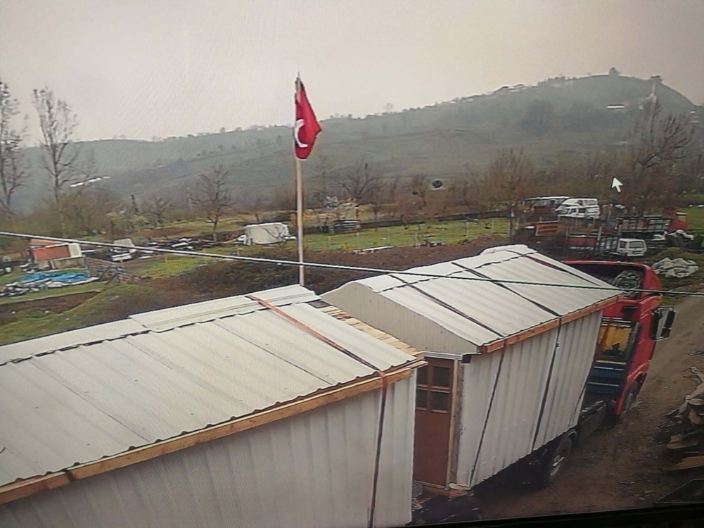 Zonguldak'ın Alaplı'da depremzedelerin barınma sorununa katkı sağlaması için muhtarlar tarafından hayata geçirilen proje çerçevesinde 8 günde gece gündüz çalışılarak üretilen 2 parçadan oluşan ahşap prefabrik ev Kahramanmaraş Elbistan ilçesine götürmek üzere yola çıktı.