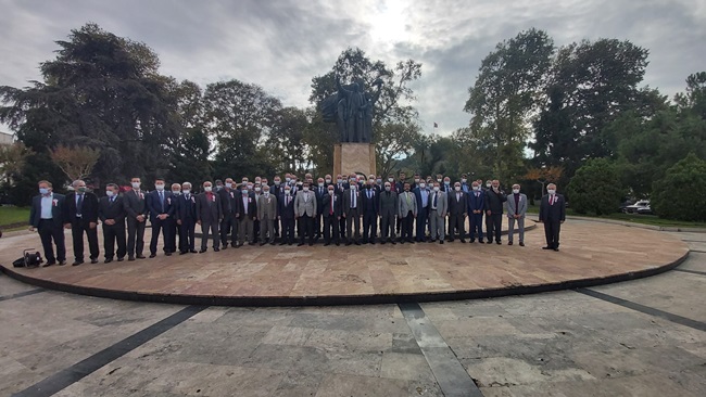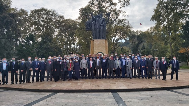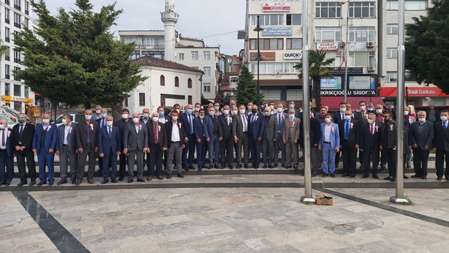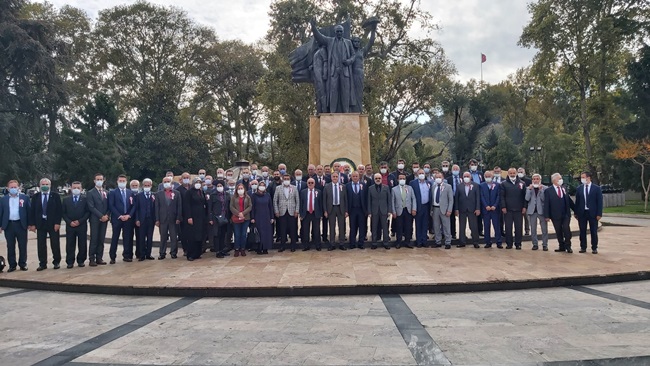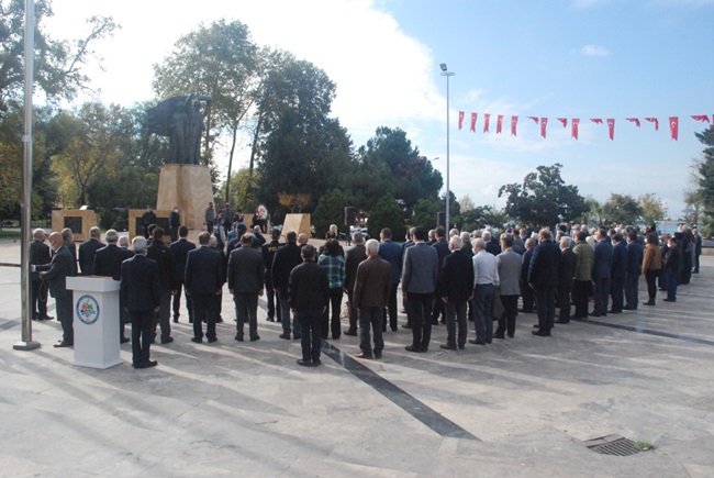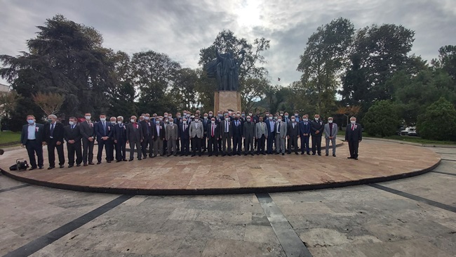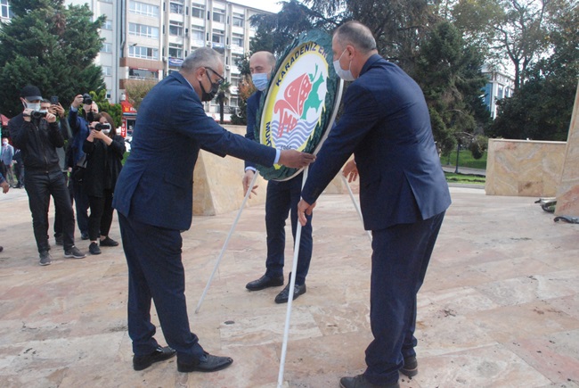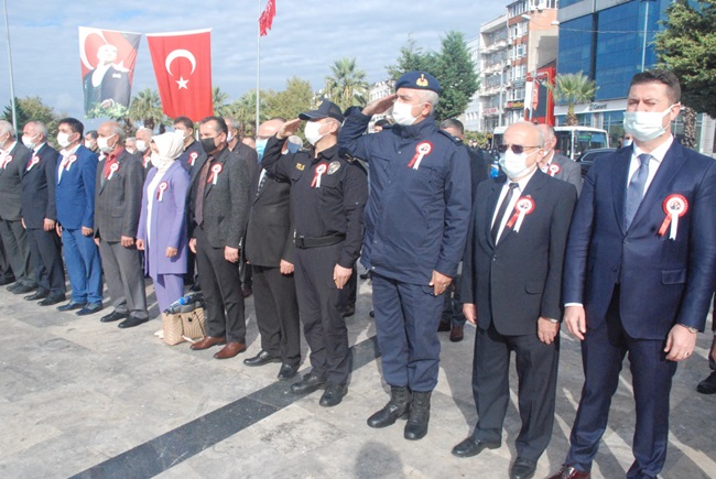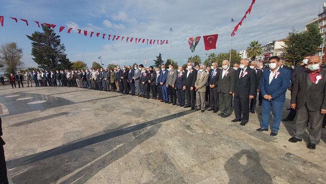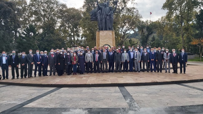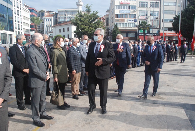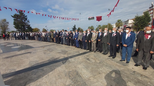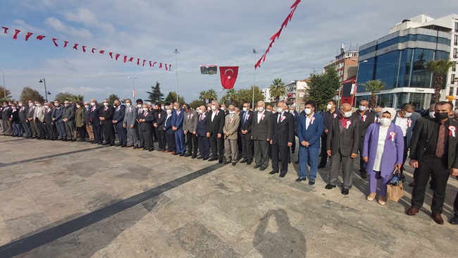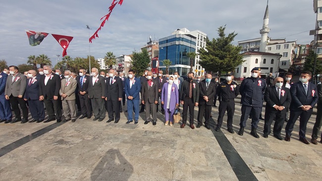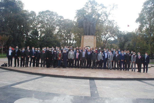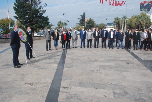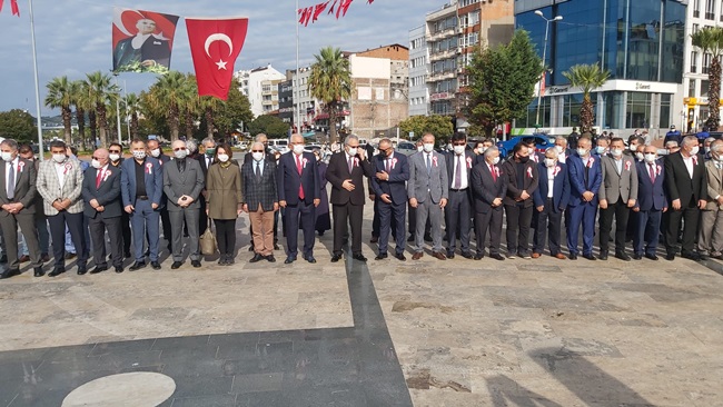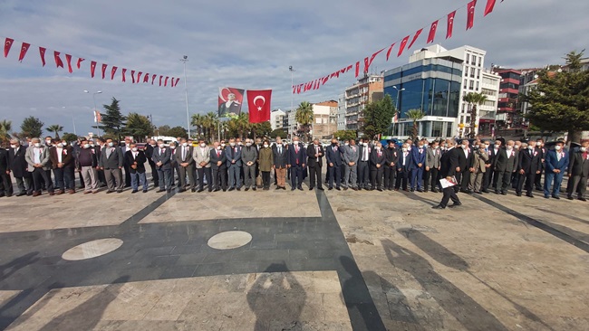 Zonguldak’ın Ereğli ilçesinde 19 Ekim Muhtarlar Günü dolayısıyla Atatürk Anıtı önünde tören düzenlendi.