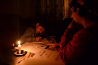 kalmak istemeyen kardeşler ise mum alevinin gölgesinde ödevlerini yapıyor. Gözü