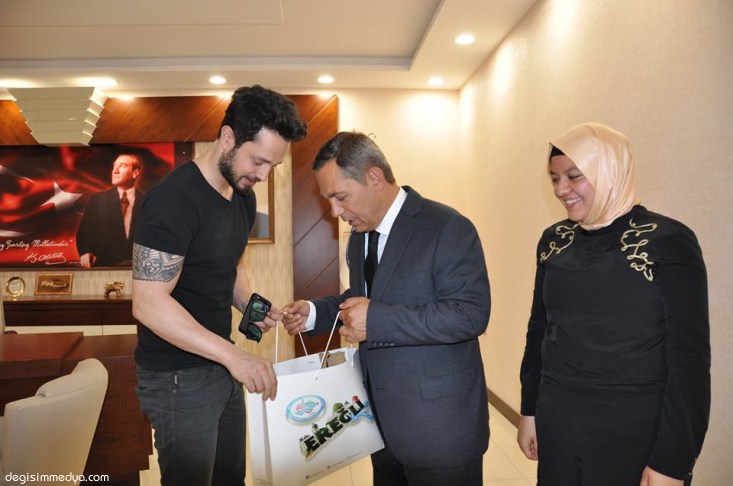 Memleketi olan Kdz.Ereğli'de reklam filmi çekimleri için bulunan Murat Boz, Ereğli Belediye Başkanı Hüseyin Uysal'ı ziyaret etti.