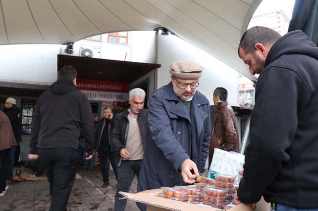Kdz. Ereğli Belediyesi Önceki Dönem Başkanlarından Murat Sesli, daha önce birlikte yol yürüdüğü arkadaşları, Merhum Turgut Tanyıldız, Gürsoy Arslangörür, İbrahim Güven ve Süreyya Keskin için Cuma namazı öncesinde Ali Molla Camii’nde Kur’an-ı Kerim okuttu. Sesli ayrıca Cami çıkışı vatandaşlara lokma ve Mevlid şekeri ikram etti. Kdz. Ereğli Belediyesi’nde birlikte görev yaptıkları Turgut Tanyıldız, Gürsoy Arslangörür, İbrahim Güven ve Süreyya Keskin ile önemli hizmetler yaptıklarını belirtti. Vefat eden dört arkadaşının da geride çok güzel anılar bıraktığının altını çizen Sesli “Değerli dostlarım, yol arkadaşlarım Merhum Turgut Tanyıldız, Gürsoy Arslangörür, İbrahim Güven ve Süreyya Keskin’in ruhları şad, mekanları cennet olsun. Onlar hep bizimle olacak. Kdz. Ereğli Belediyesi’nde görev yaptığımız süre içerisinde birlikte Kdz. Ereğli’mize gerçekten güzel hizmetler yaptık. Bu hizmetleri yaparken hem görev süremiz içerisinde hem de sonrasında çok güzel dostluklarımız oldu. Her biri ilçemizin sevilen, iyi anılan insanlarıydı. Yoklukları bizleri çok üzsede geride bıraktıkları güzel anılarla onları hiç unutmayacağız. Katılım sağlayan ailelerine ve tüm sevenlerine yürekten teşekkür ediyorum” dedi.