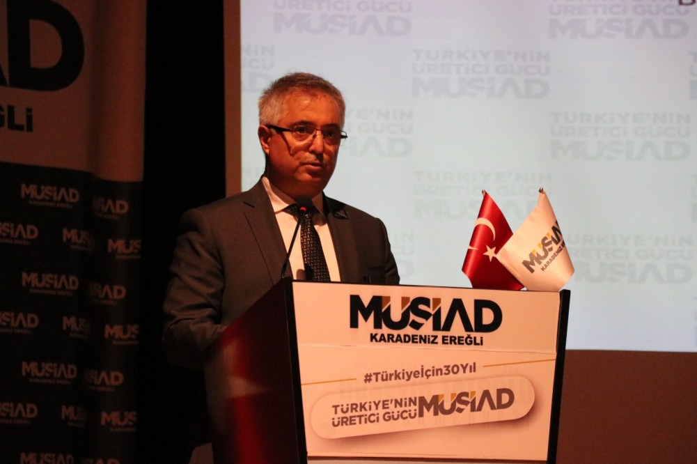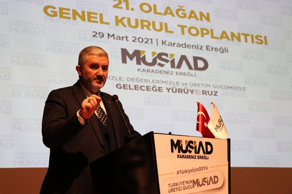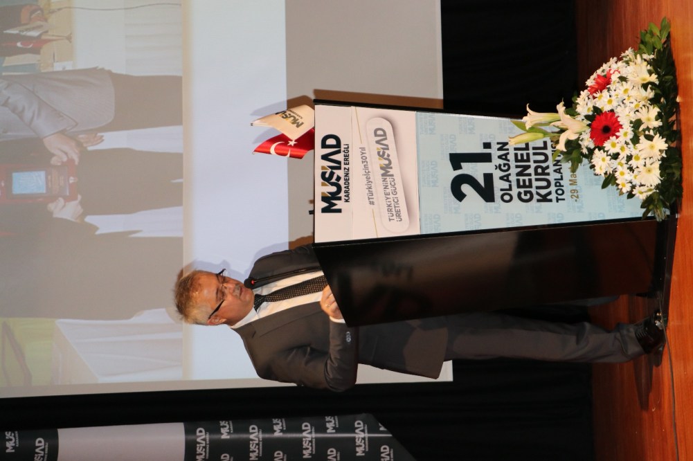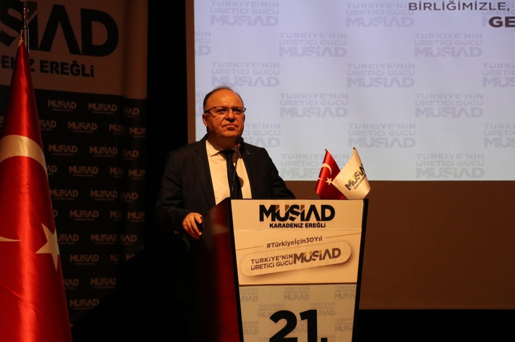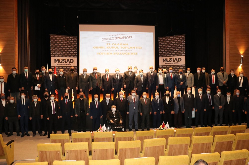 MÜSİAD Kdz. Ereğli 21. Olağan Genel Kurulu, Hüseyin Tatoğlu Kültür Merkezi’nde yapıldı. Kongreye, Zonguldak Valisi Mustafa Tutulmaz, Kdz. Ereğli Kaymakamı İsmail Çorumluoğlu, Kdz. Ereğli Belediye Başkanı Halil Posbıyık, MÜSİAD Kdz. Ereğli Başkanı Abdulkadir Çınar, Kdz. Ereğli TSO Başkanı Arslan Keleş, AK Parti Kdz. Ereğli İlçe Teşkilatı Başkanı Saffet Bozkurt, siyasi parti temsilcileri, sivil toplum kuruluşlarının temsilcileri, bölgedeki sanayici ve işadamları, MÜSİAD üyeleri ve davetliler katıldı.