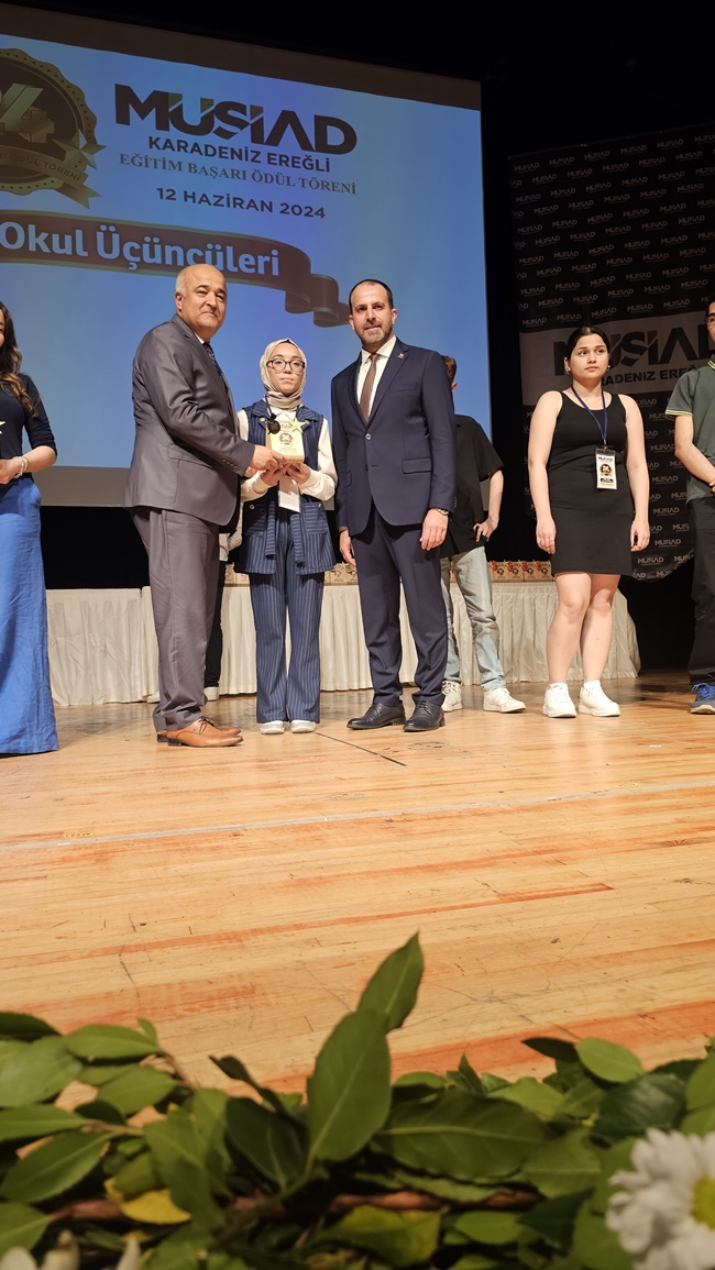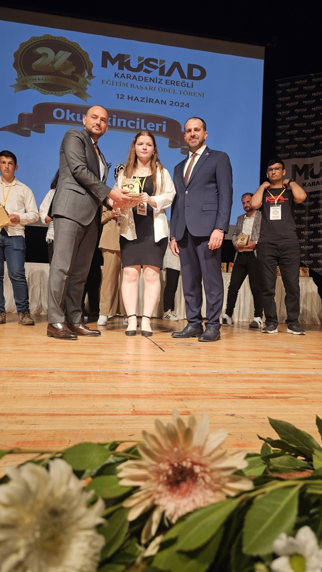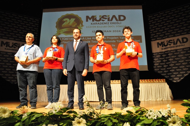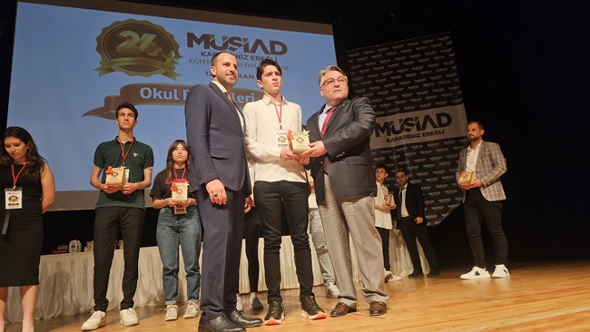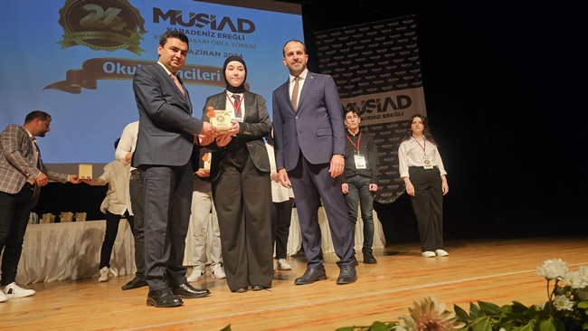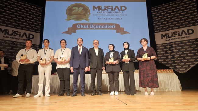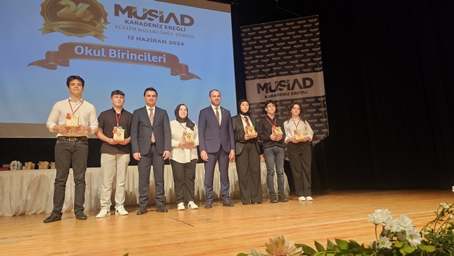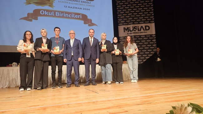 MÜSİAD Karadeniz Ereğli Şubesi tarafından 24. MÜSİAD Eğitim Başarı Ödül töreninde, Karadeniz Ereğli, Alaplı ve Akçakoca ilçelerindeki lise ve dengi okullardan ilk üç dereceyle mezun olan 123 öğrenci ile ulusal yarışmalarda başarı elde eden öğrencilere ödülleri takdim edildi.