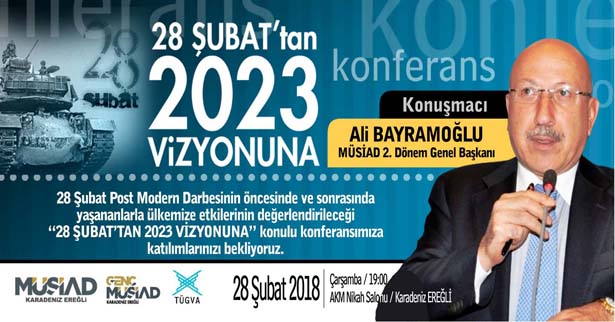 Müstakil Sanayici ve İş Adamları Derneği (MÜSİAD)Karadeniz Ereğli Şubesi'nce, "28 Şubat'tan 2023 Vizyonuna" temalı konferans düzenleneceği bildirildi.