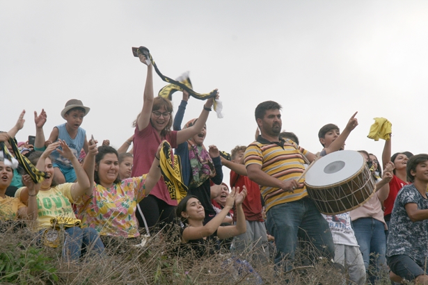 takımlarını tezahüratları ile desteklemek üzere sahada hazır bulundu.