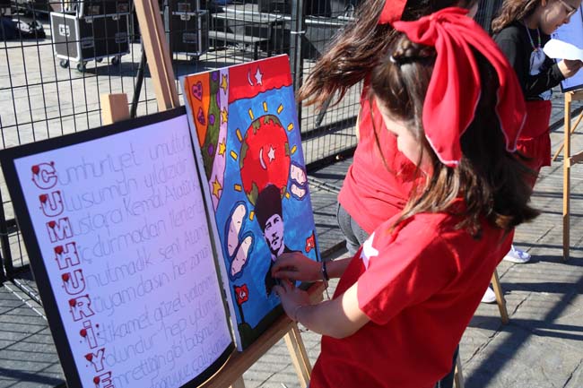 Oyuncak Müzesi Koordinatörü Melih Can Tanrıkulu, şu bilgileri verdi; “3-4-5. sınıflardan seçilen öğrenciler; “Cumhuriyet” temalı eş zamanlı olarak, hem şiir hem de resim canlı performansını Amfi Tiyatro’da izleyicilerin karşısında deneyimleme imkanı buldular.