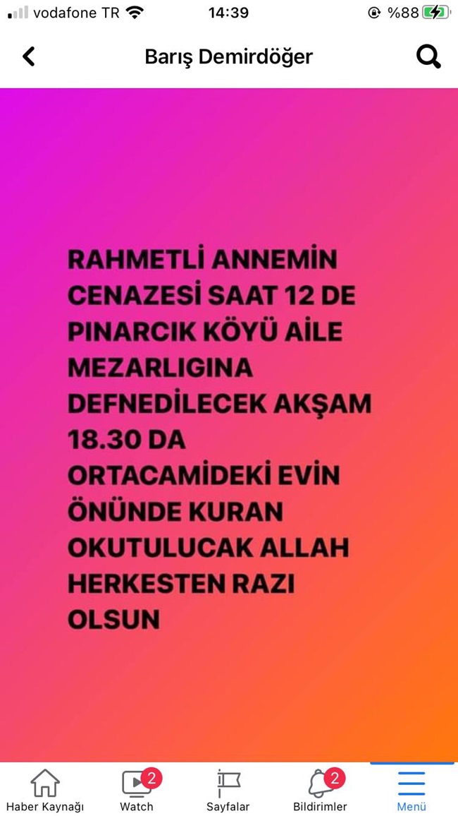 Zonguldak’ın Ereğli ilçesinin sevilen isimlerinden ve Müzisyen Barış Demirdöğer’in annesi Kadriye Demirdöğer Koronavirüs’e yenik düştü. Merhume Demirdöğer Pınarcık köyünde son yolculuğuna uğurlandı.