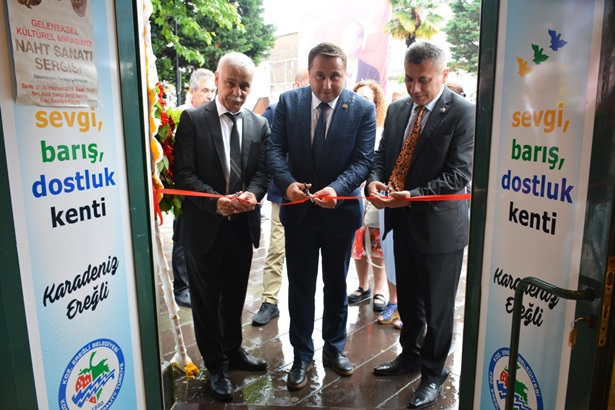 Kdz. Ereğli Belediye Başkanvekili Emrah Karaarslan, Tuncay Çetinkaya'nın Naht Sanatı Sergisinin açılışını gerçekleştirdi.